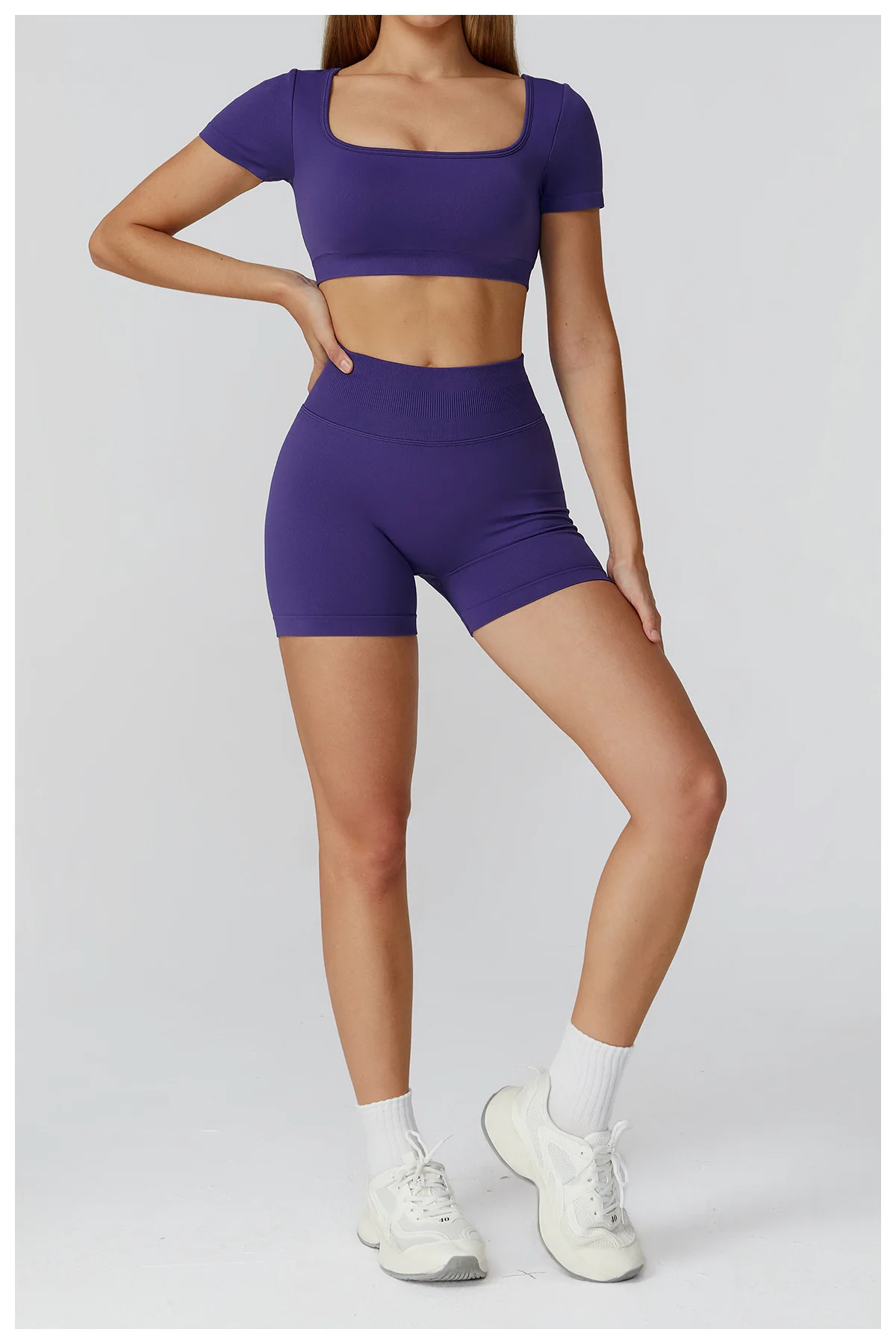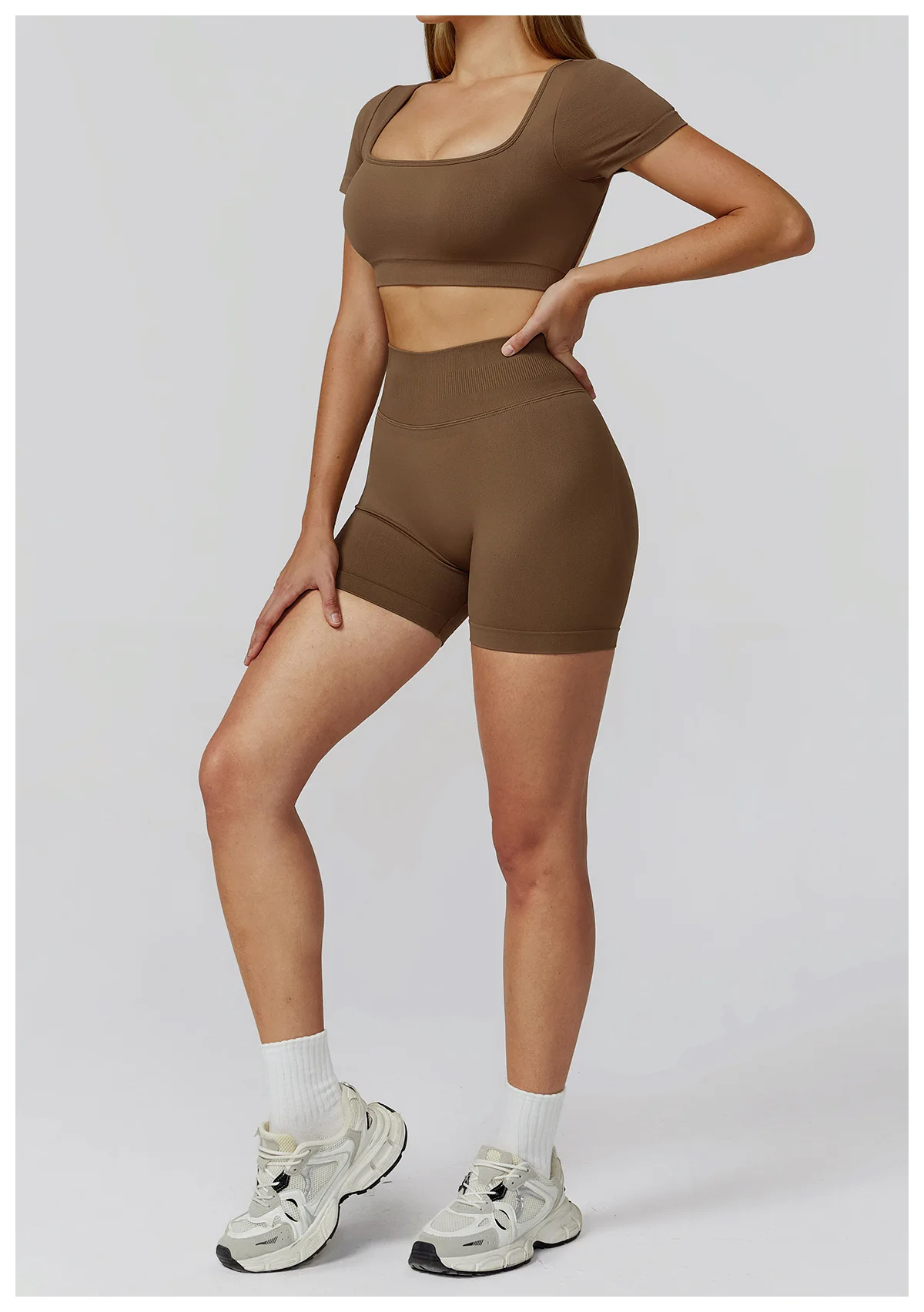 The fabric feels soft yet supportive, and the set moves perfectly with my body during workouts.The high-waist shorts don’t roll down at all, even during squats. Super flattering and breathable — I’m obsessed.