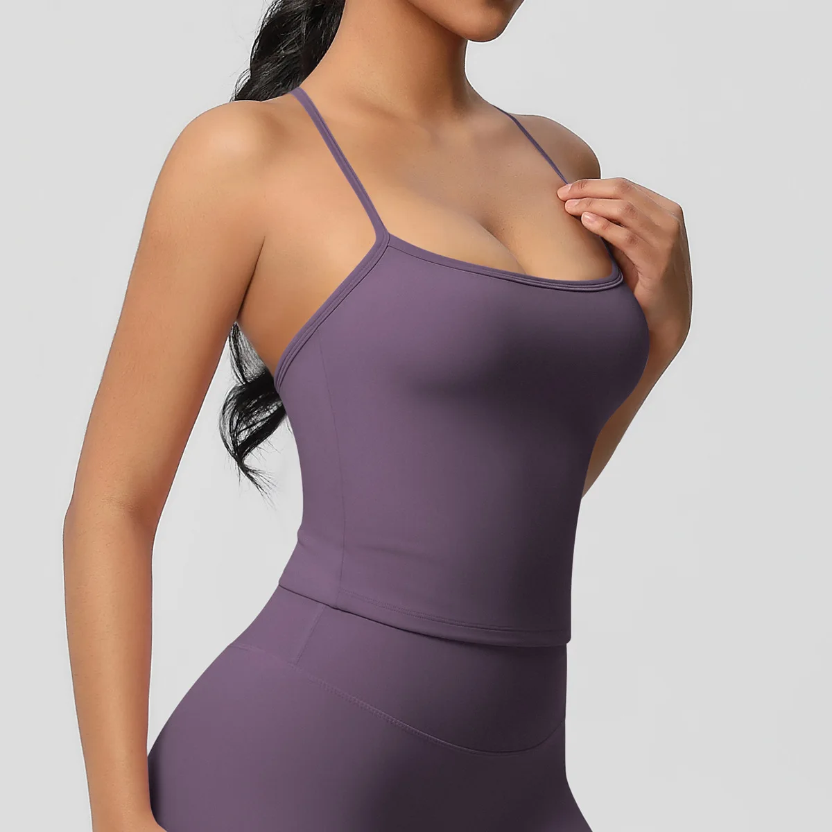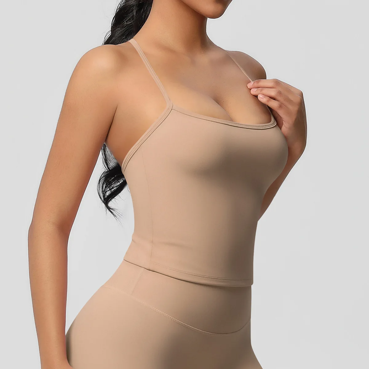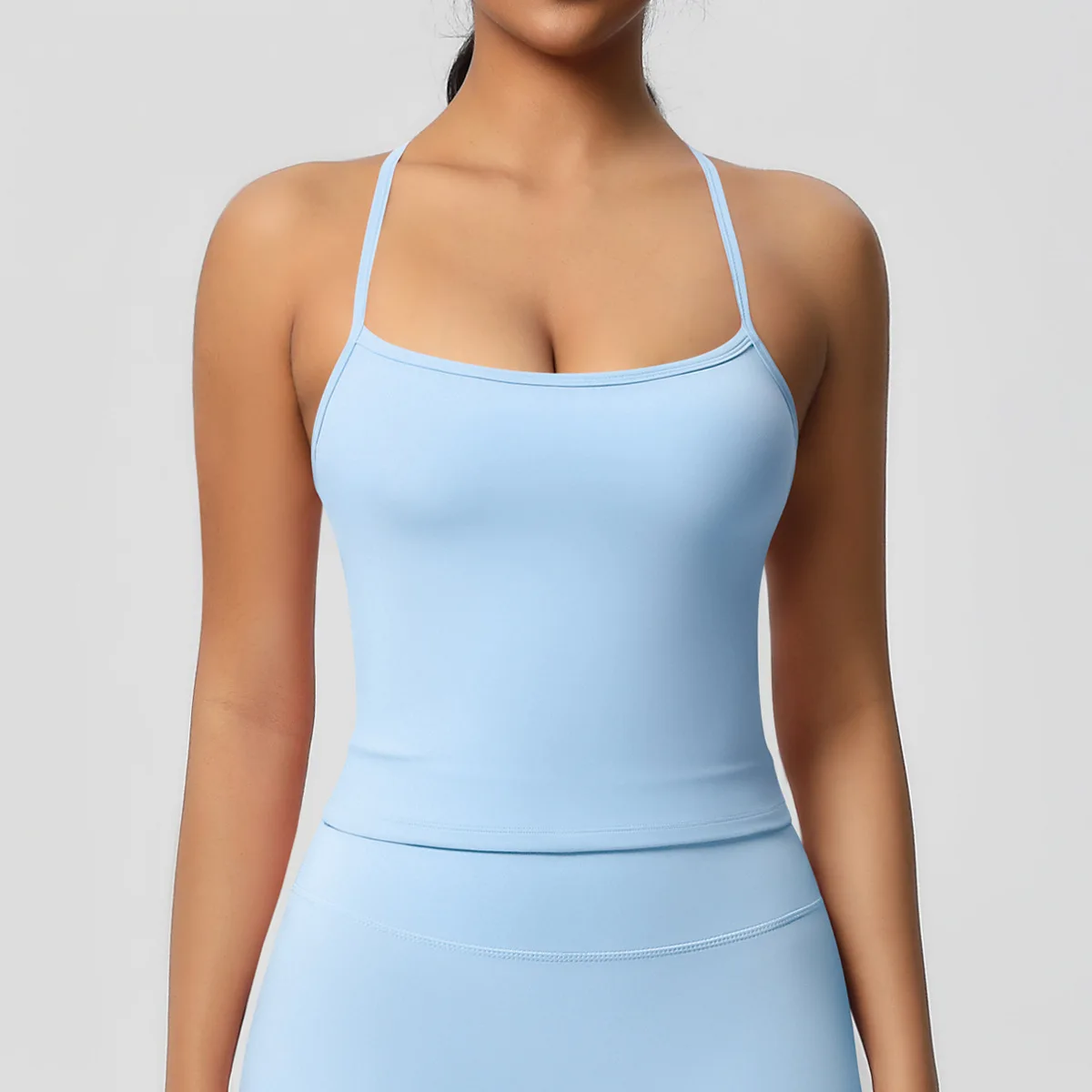 Elevate your workouts with this elegant back-strap yoga sports bra, designed for comfort, style, and support.