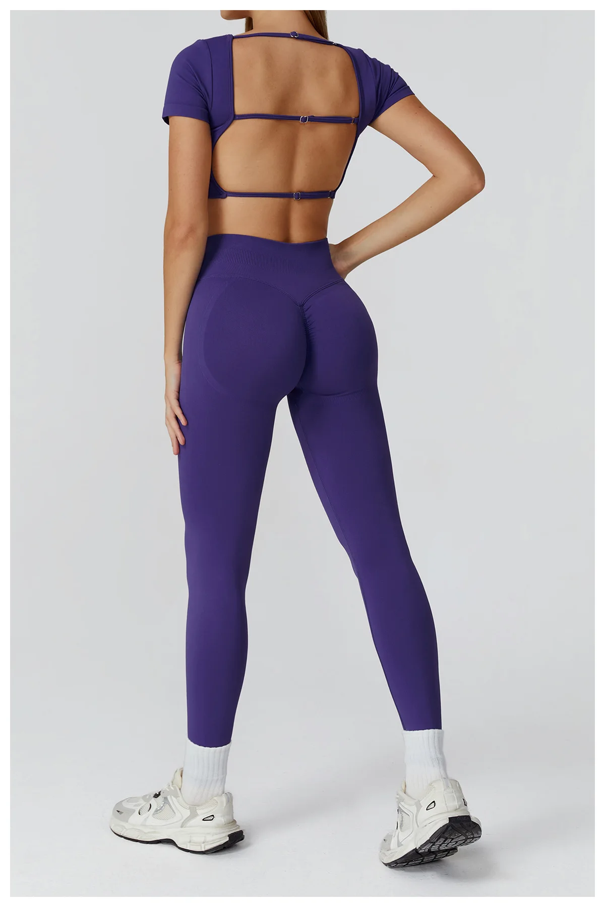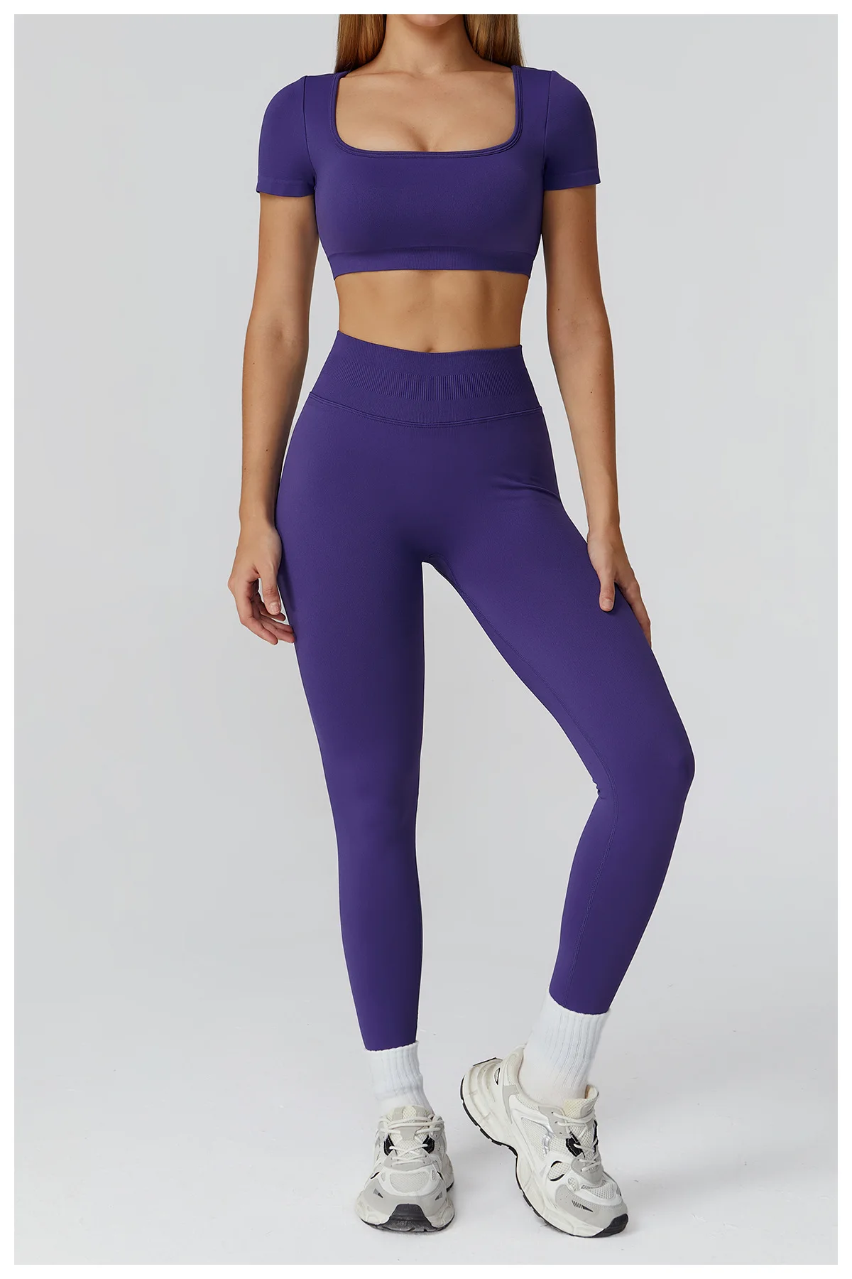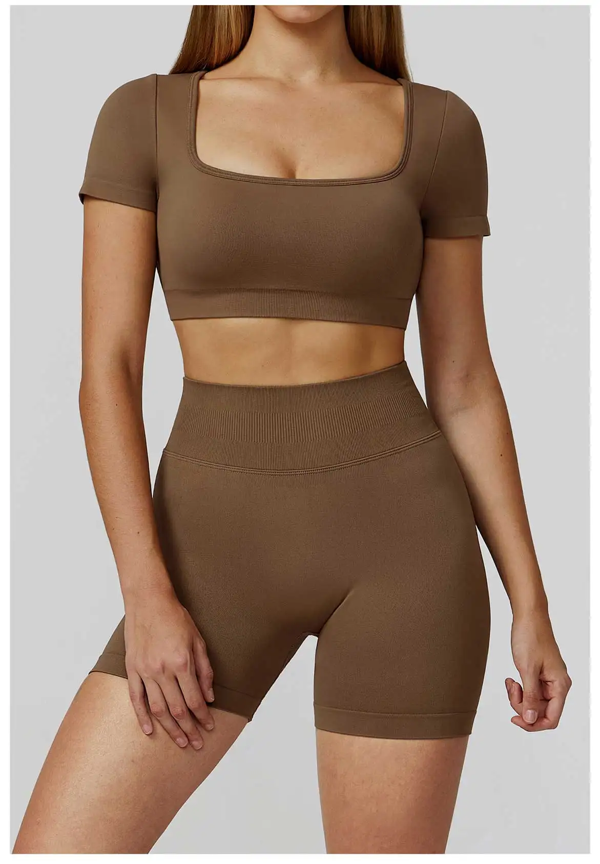 A sleek seamless crop top designed for performance, comfort, and a flattering athletic look. The short sleeves and tight-fit cut offer light support while enhancing freedom of movement, making it perfect for gym workouts, yoga, pilates, running, or everyday sporty style.