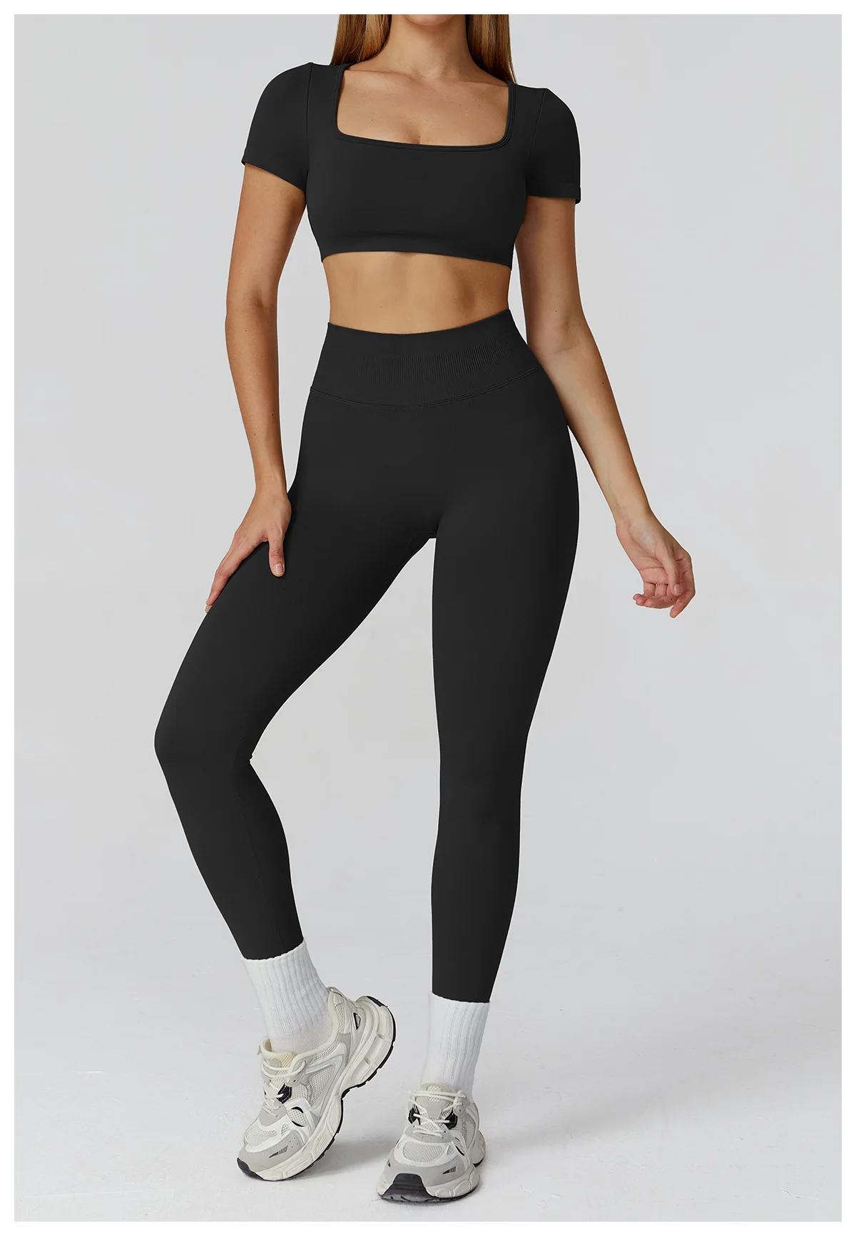 The fabric feels soft yet supportive, and the set moves perfectly with my body during workouts.The high-waist shorts don’t roll down at all, even during squats. Super flattering and breathable — I’m obsessed.