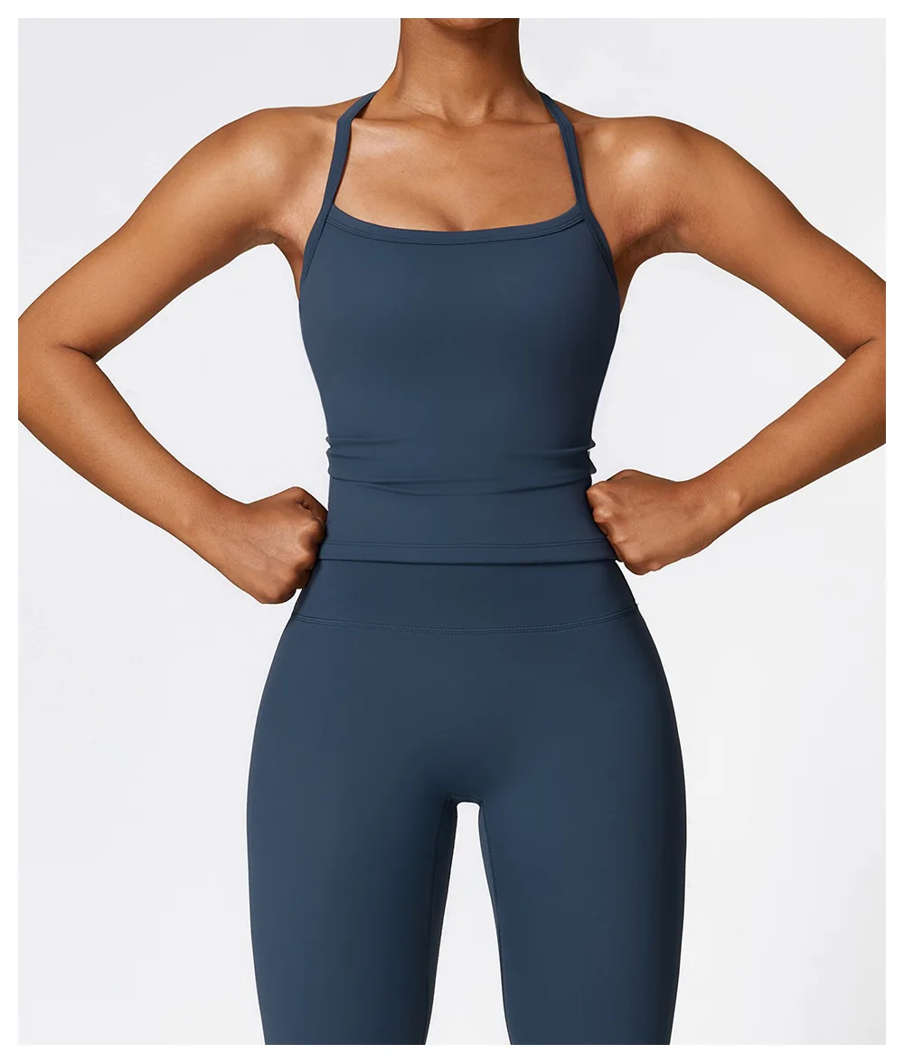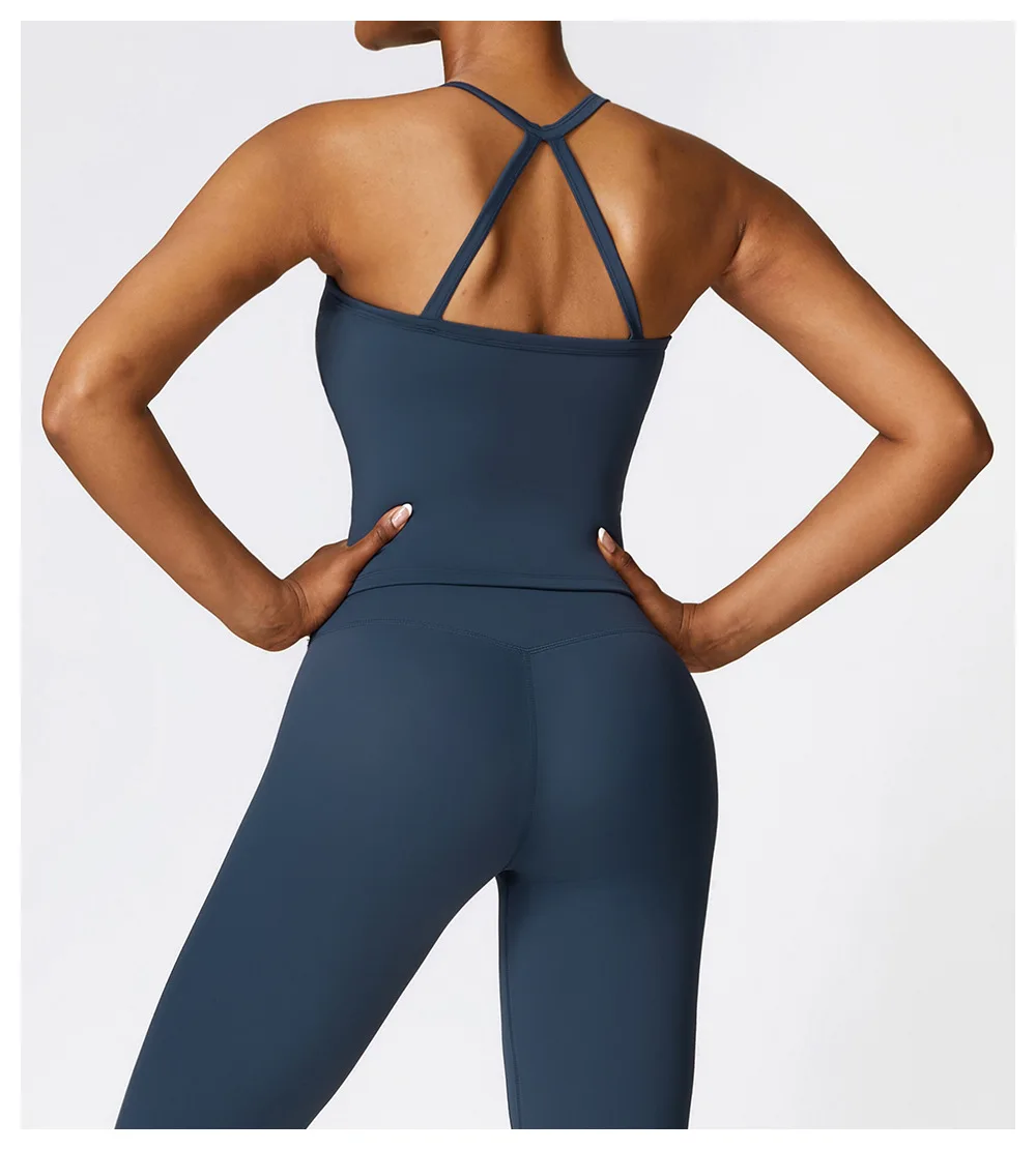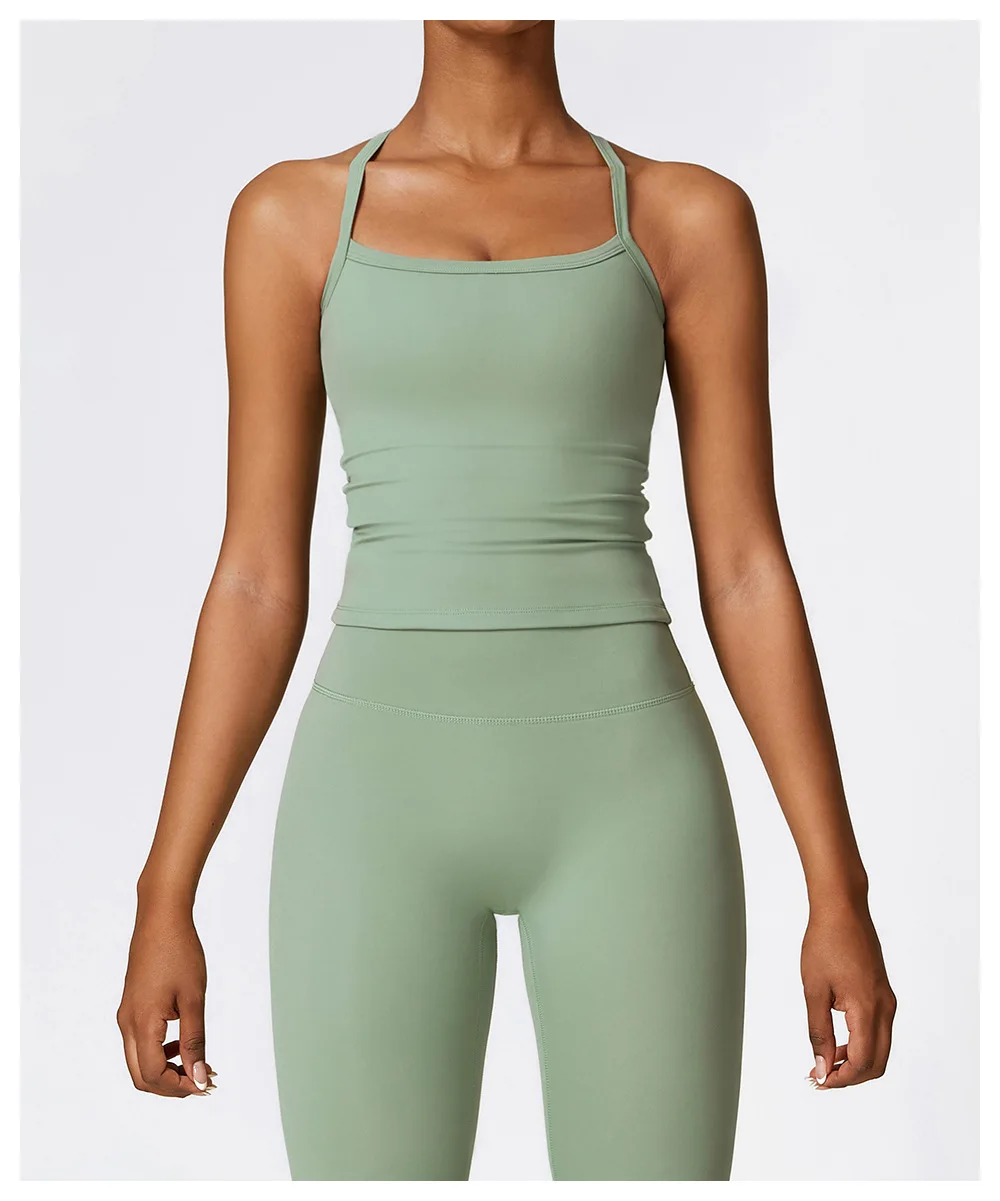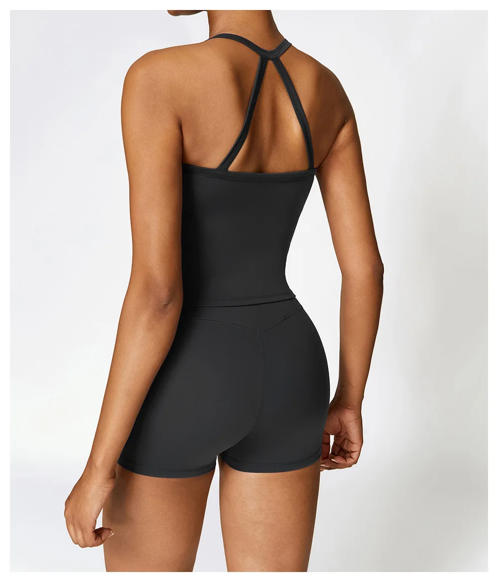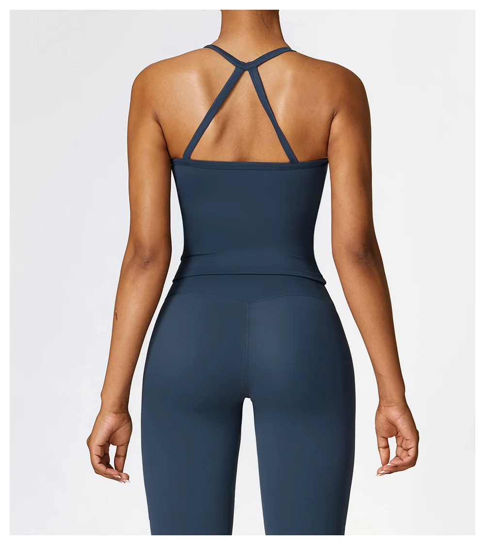 Train in comfort and style with this strappy longline yoga sports bra, designed for women who want a supportive and elegant activewear top.