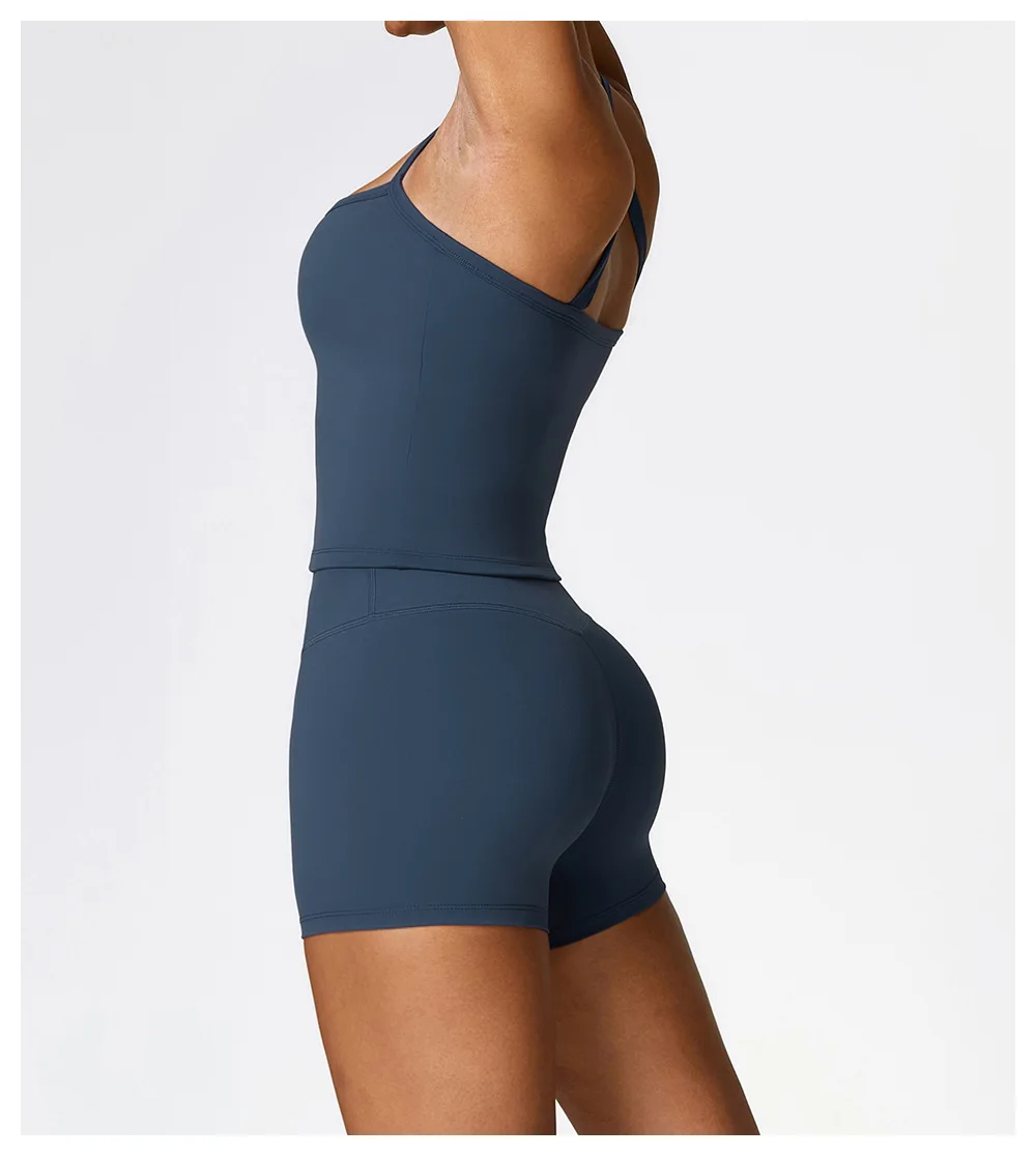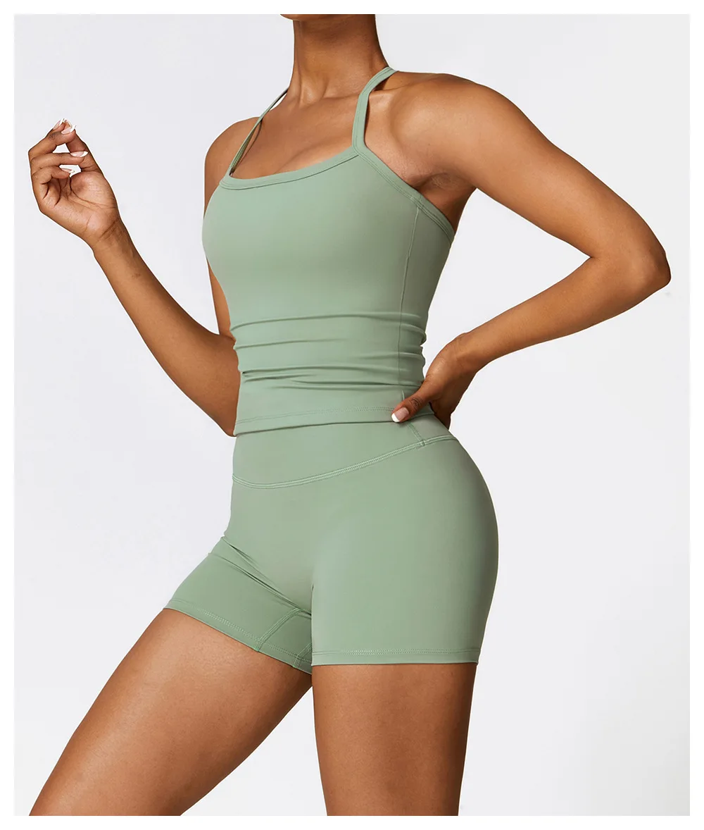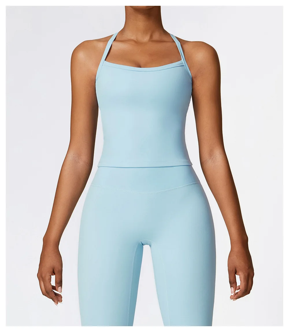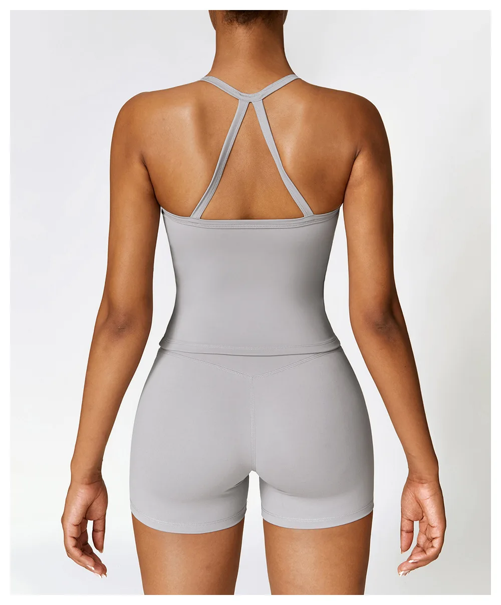 Train in comfort and style with this strappy longline yoga sports bra, designed for women who want a supportive and elegant activewear top.
