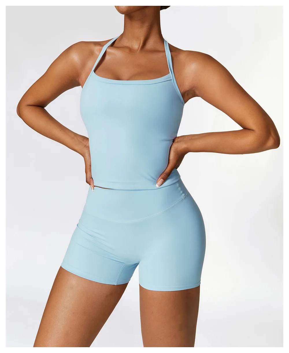 The color is even prettier in person.The sports bra gives great support without being restrictive, and the shorts fit like a second skin.Definitely buying another set.